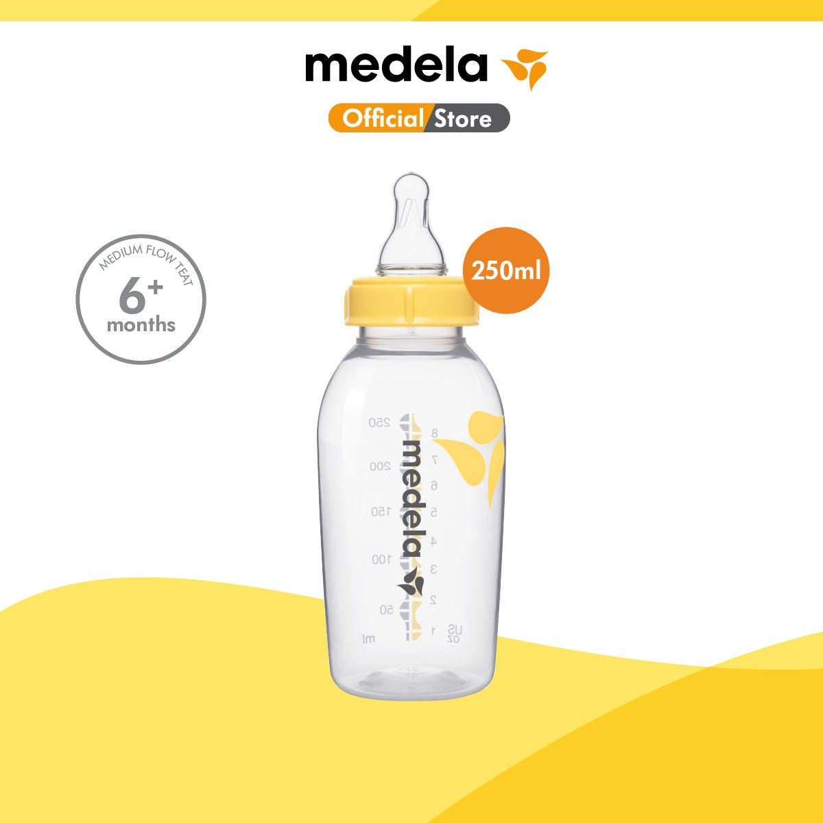 - Breast milk bottle with imprint (250ml), medium flow teat (M), lid, disc, cap