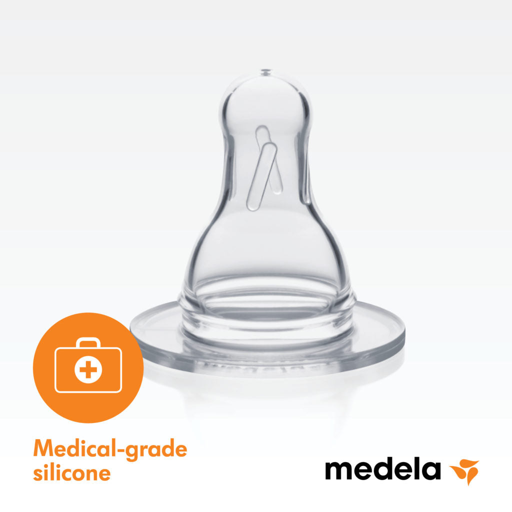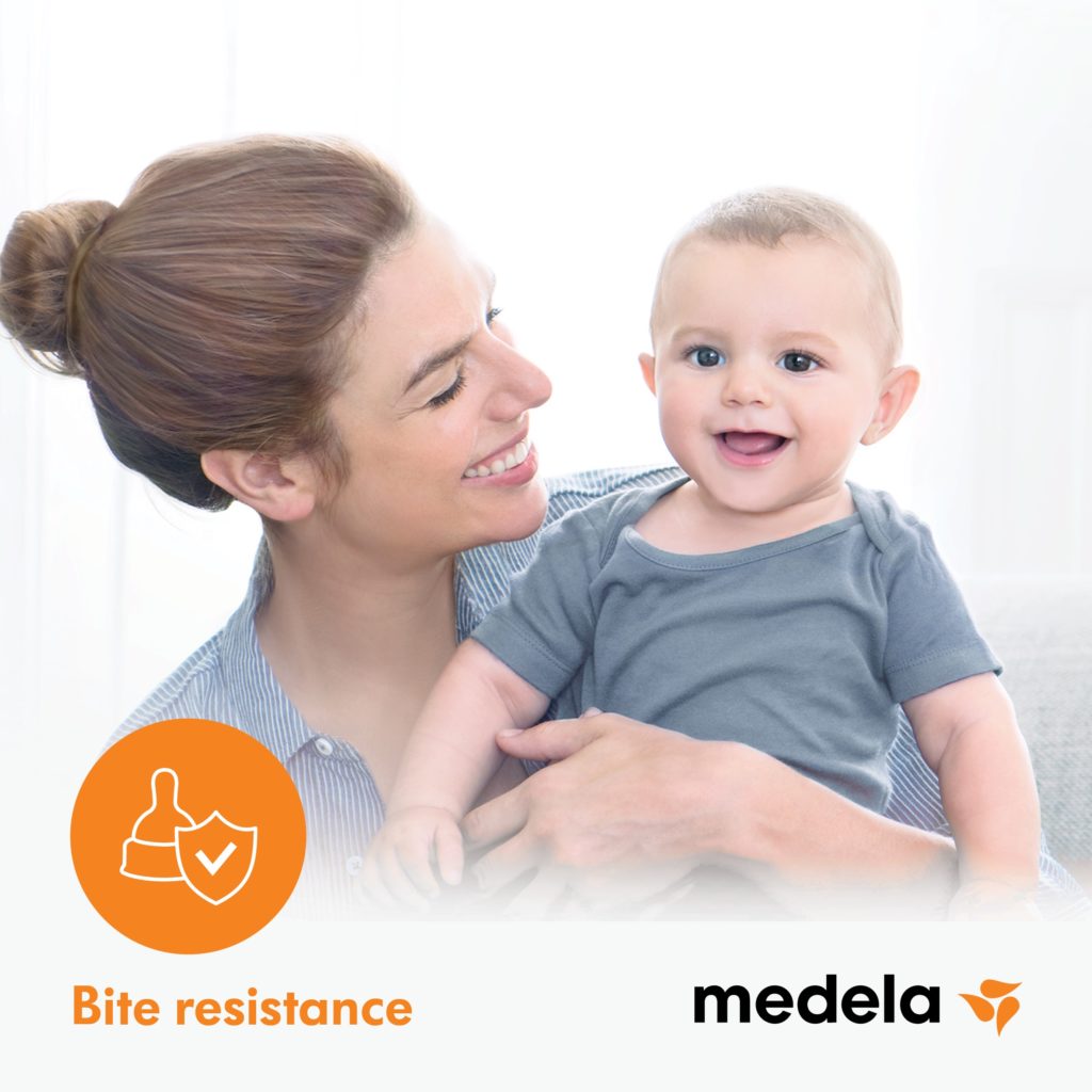The bottle’s teat is available in either the slow or medium flow version, so the Medela breast milk bottle can always be adapted to suit the age and needs of your growing baby. It comes with a travel cap to keep the teat clean whilst you are out and about.