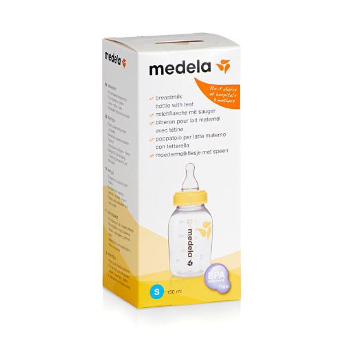 - Breast milk bottle with imprint (150ml), slow flow teat (S), lid, disc, cap