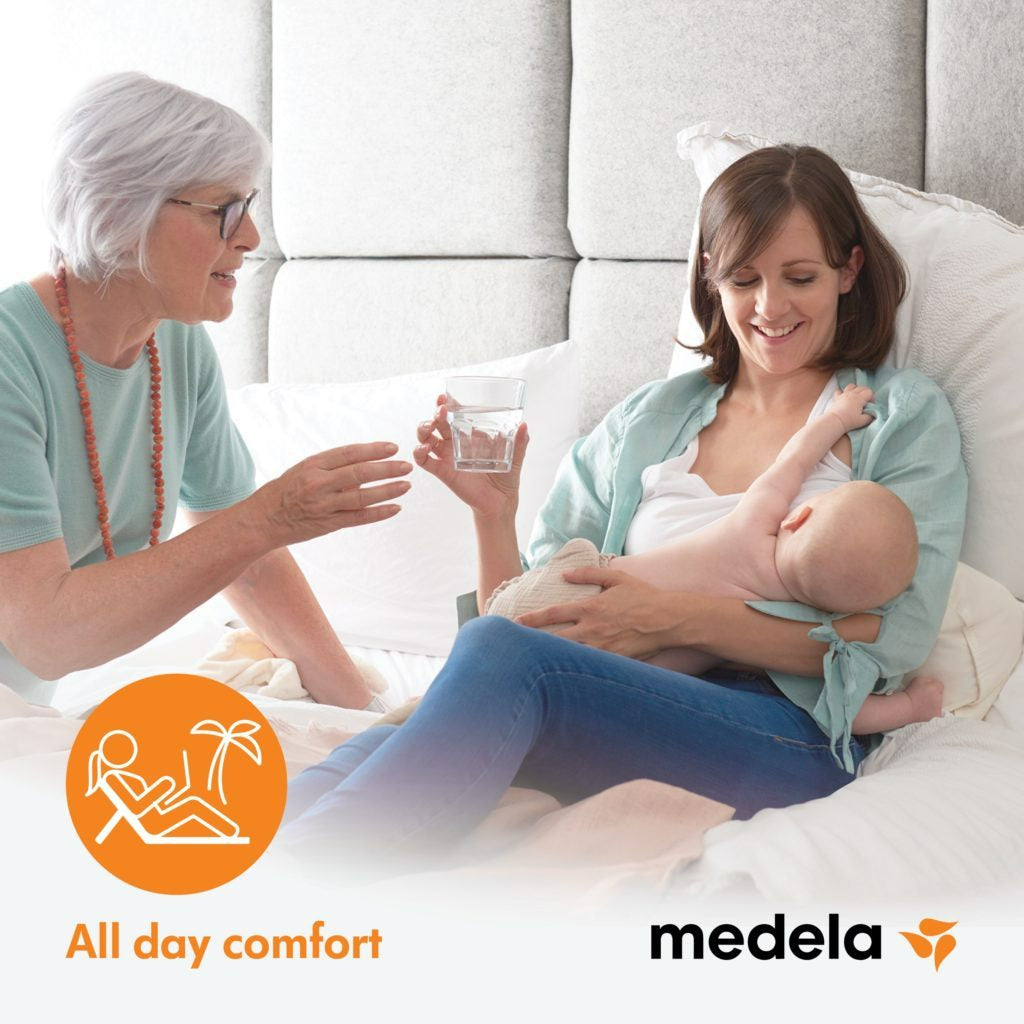 Breast shells fit inside your bra to prevent fabric rubbing against sensitive or sore nipples, allowing your skin to recover and promoting healing. It’s a good idea to wear a nursing bra when using breast shells, as these tend to be a bit roomier than a typical bra, so it’s easier to fit them inside. However, you don’t need to worry about Medela breast shells showing through your clothes, as their low-profile shape ensures a natural look. You can wear breast shells continuously between breastfeeding sessions, but avoid using them in bed at night, as this can aggravate sore nipples.