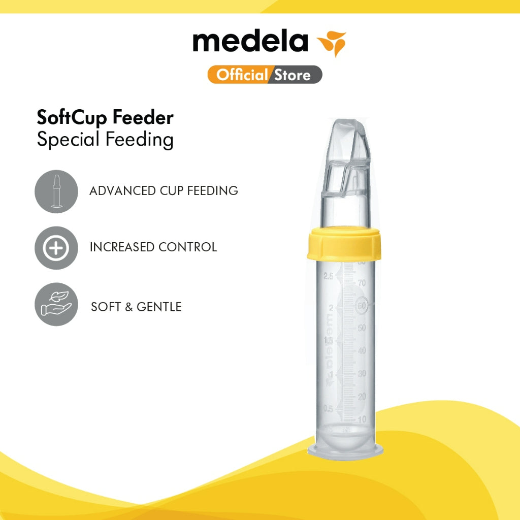 Feeding with the Medela SoftCup is an easy way to cup-feed. Due to the one-way valve membrane between the container and the mouthpiece, the milk flow can easily be regulated by squeezing the chambers of the mouthpiece.